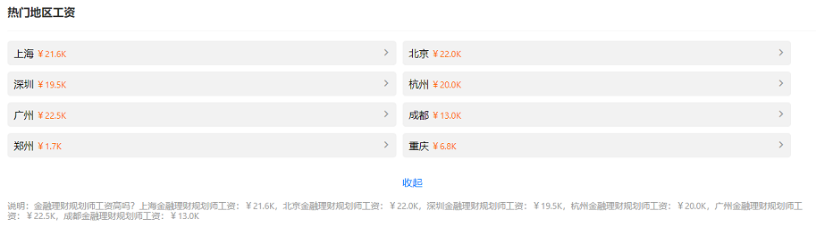 這是一份高薪職業(yè),在職位收錄平臺(tái)我們了解到,全國(guó)理財(cái)規(guī)劃師工資收入達(dá)到12.3k/月,可見(jiàn)1~3線城市的待遇將會(huì)更具誘惑。