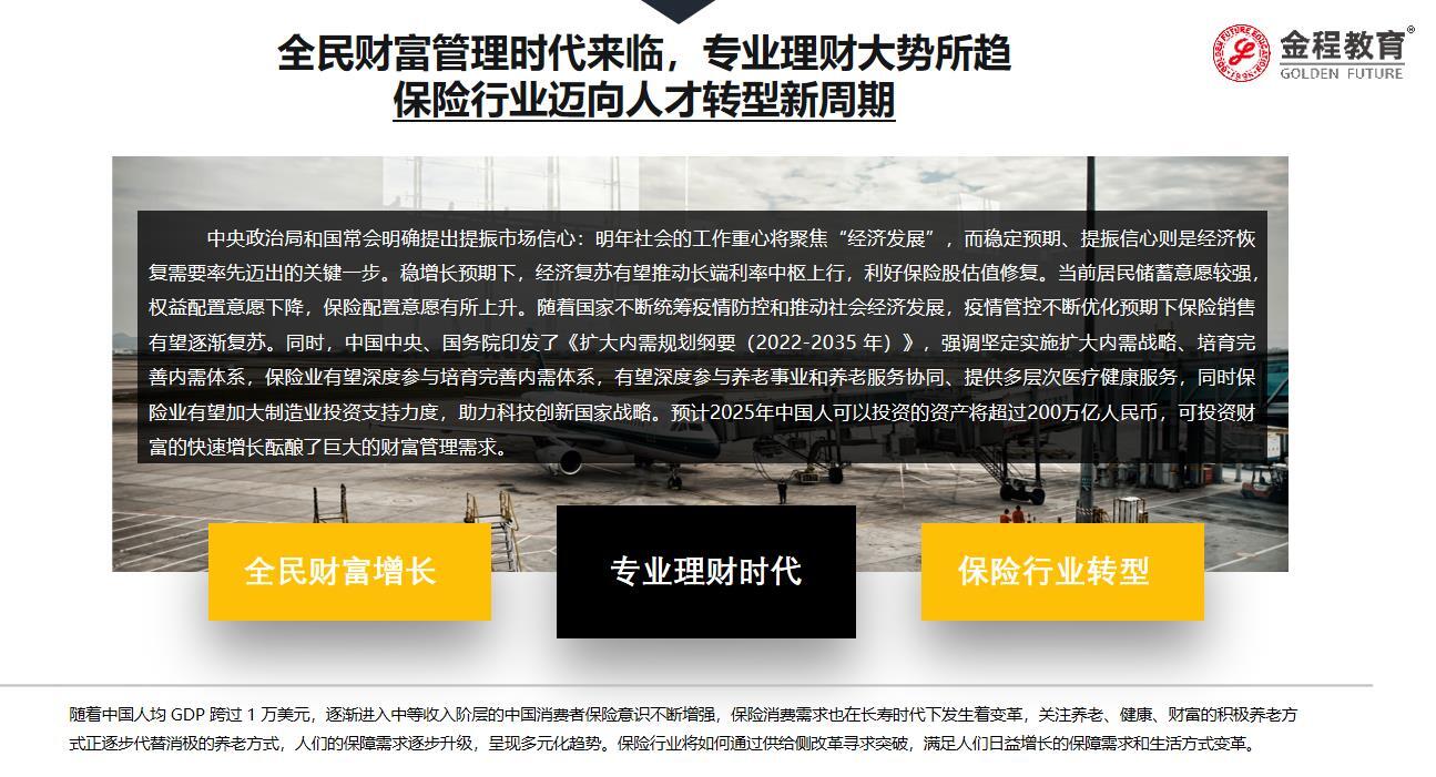 金程RFP課程體系強大,由 200 多位全兼職專業(yè)師資、30 余名 10 年以上金融行業(yè)培訓專家、10 余名 20 年保險從業(yè)專家顧問精心打磨。采用 “3 2 金字塔式” 教學模式,以案例為先導、以問題為抓手、以學生為主體,集 “考證、實務、活動” 為一體。課程涵蓋七大基礎課程與七大實務規(guī)劃,包括投資、養(yǎng)老、子教、法律、稅務等全方位知識,幫助從業(yè)者將理論與實操結合、知識與技能融合,全面提升財富規(guī)劃專業(yè)能力,滿足客戶多樣化需求。
