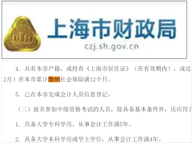 具有本市戶籍,或持有《上海市居住證》(在有效期內(nèi)),或近2年內(nèi)(2019年3月至2021年2月)在本市累計(jì)繳納社會(huì)保險(xiǎn)滿12個(gè)月;已在本市完成會(huì)計(jì)人員信息登記。