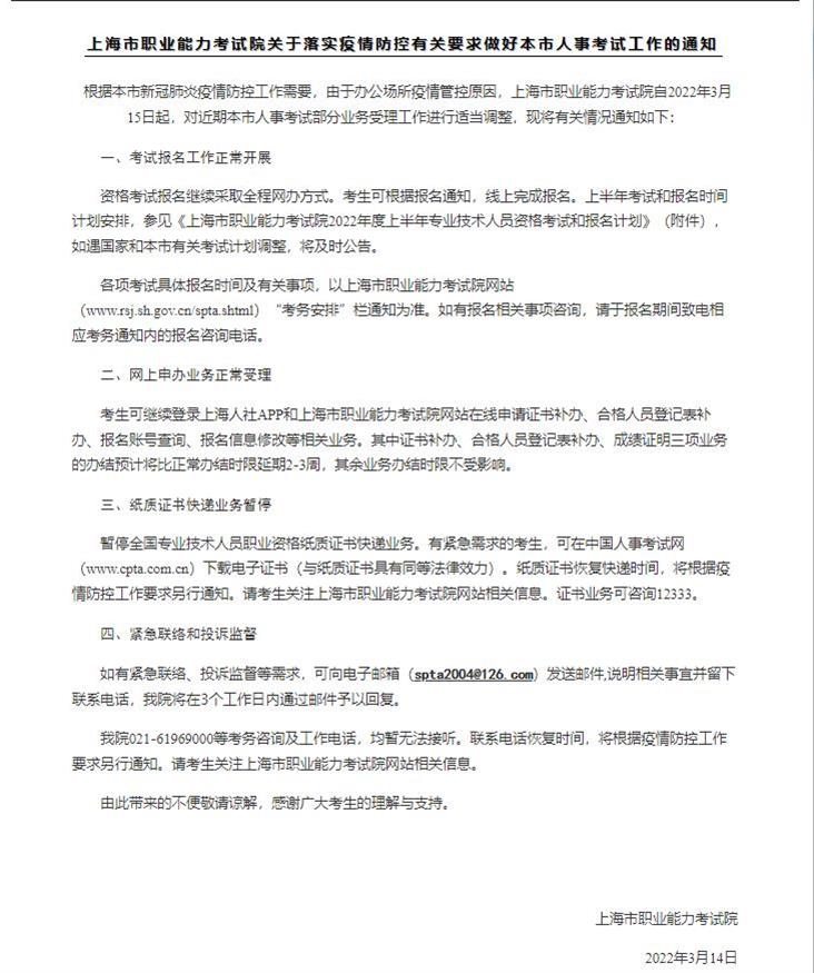 上海市職業(yè)能力考試院2022年度上半年專業(yè)技術(shù)人員資格考試和報(bào)名計(jì)劃