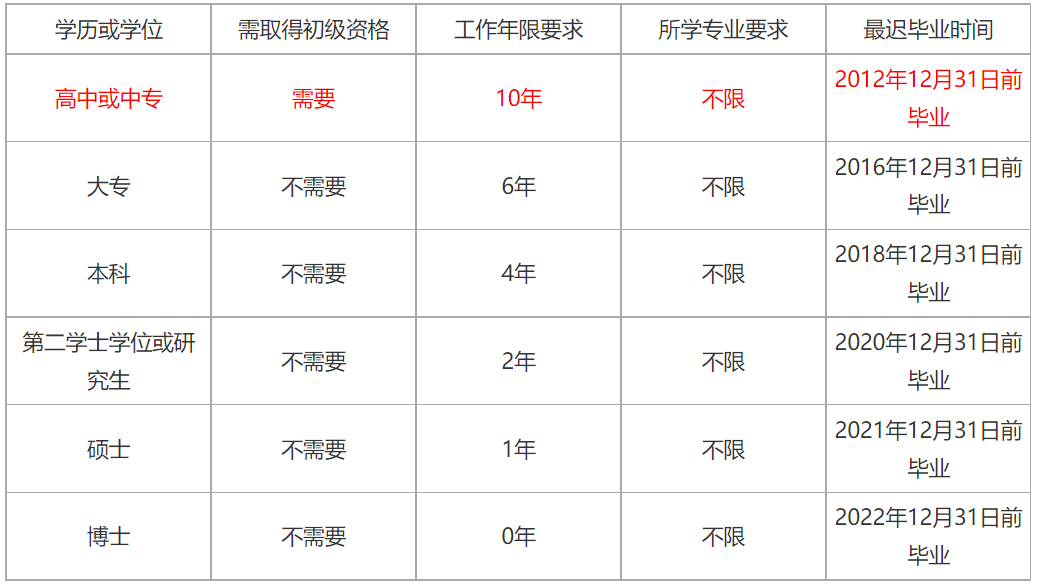 4、具備第二學士學位或研究生班畢業(yè),從事相關專業(yè)工作滿2年;