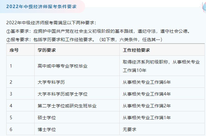 中級(jí)經(jīng)濟(jì)師報(bào)考工作年限要求