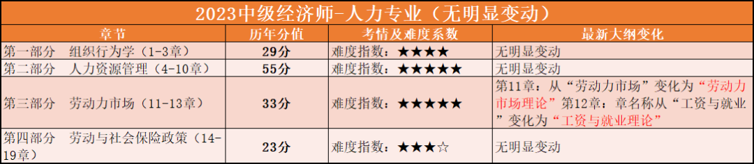 2023年中級(jí)人力的大綱整體變動(dòng)不大,變動(dòng)主要在第11章,大部分主要是調(diào)整了部分詞句的表達(dá),以及較小知識(shí)點(diǎn)的變化。