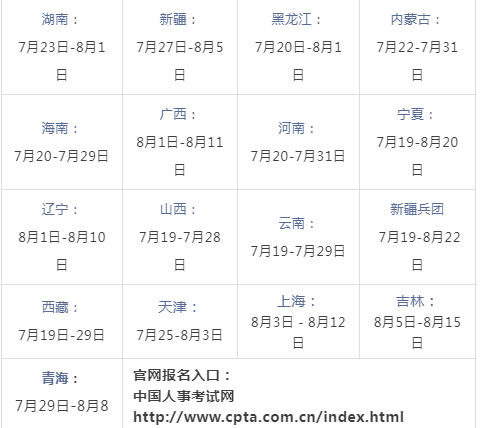 預計每年7-8月,各省報名時間和報名周期均不相同,務必以各地人事考試中心的通知為準。