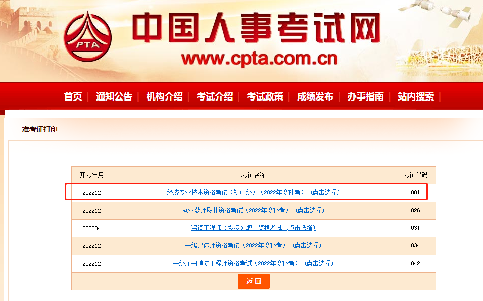 選擇“經(jīng)濟專業(yè)技術資格考試”后根據(jù)提示,進行下載打印即可。