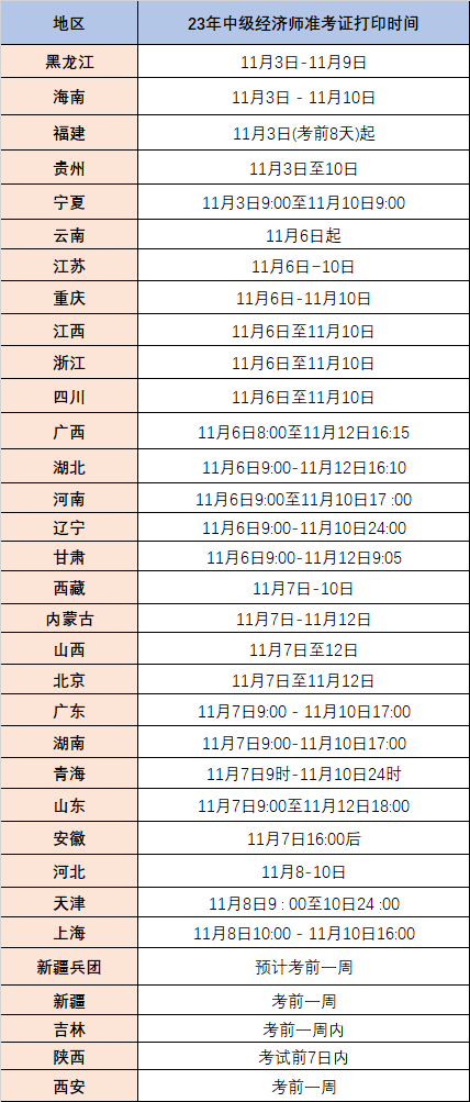 2023年初中級經(jīng)濟師報考公告均已發(fā)布,且報考公告中已說明23年準考證打印時間,為幫助大家及時掌握各地準考證打印具體時間,老師為大家匯總了2023年中級經(jīng)濟師各地準考證打印時間,僅供參考,建議收藏關注!