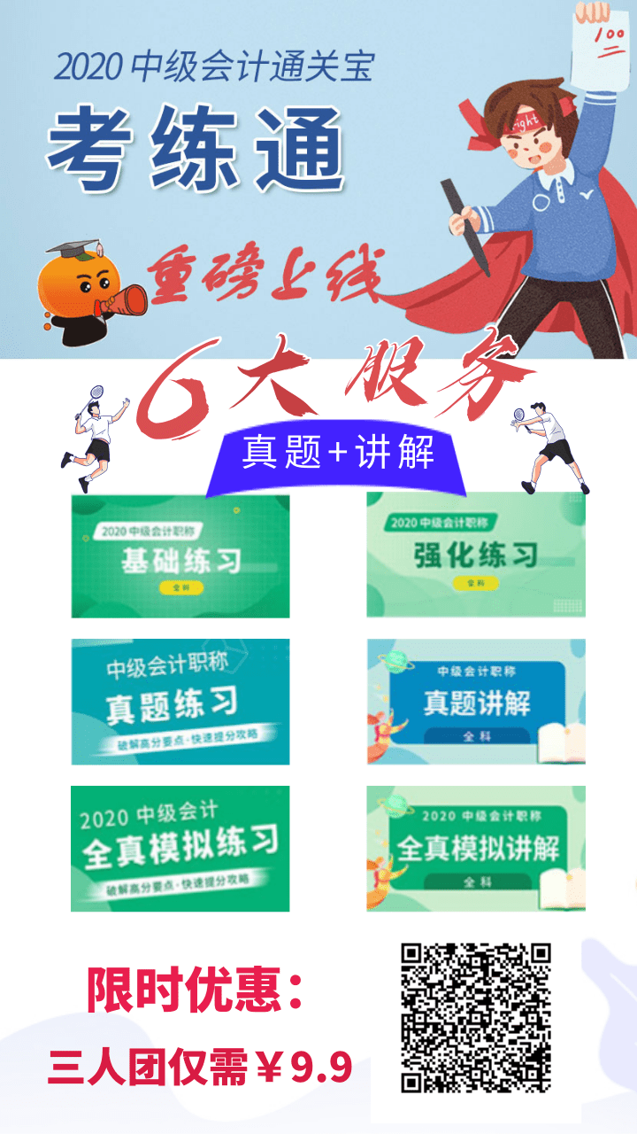 《中級會計考練通》,幫你全面梳理中級的考點,6大服務(wù),真題加講解,限時優(yōu)惠,三人團僅需9.9元哦。