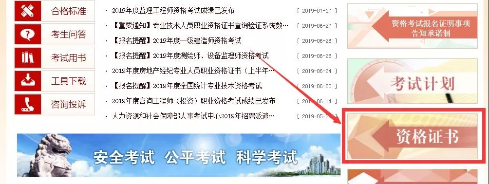 打開中國人事考試網(wǎng)官網(wǎng):http://www.cpta.com.cn下拉在右側(cè)找到資格證書▼