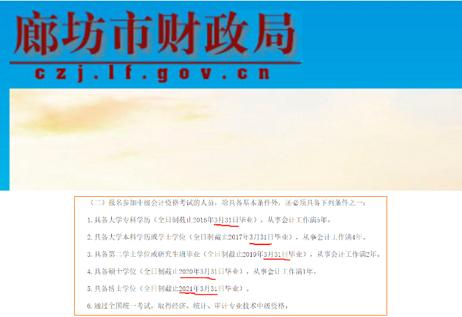 3.具備第二學士學位或研究生班畢業(yè)(全日制截止2019年3月31日畢業(yè)),從事會計工作滿2年。