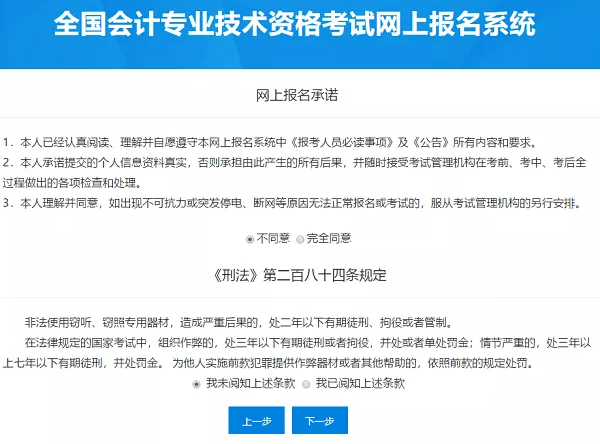 4、點擊進(jìn)入以后,查看網(wǎng)上報名須知,選擇“完全同意”及閱讀條款后,點擊下一步。