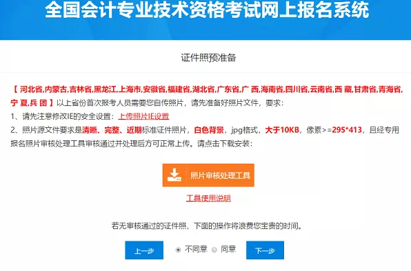 5、進(jìn)入證件照預(yù)準(zhǔn)備界面,考生需使用照片審核處理工具上傳符合要求的照片。