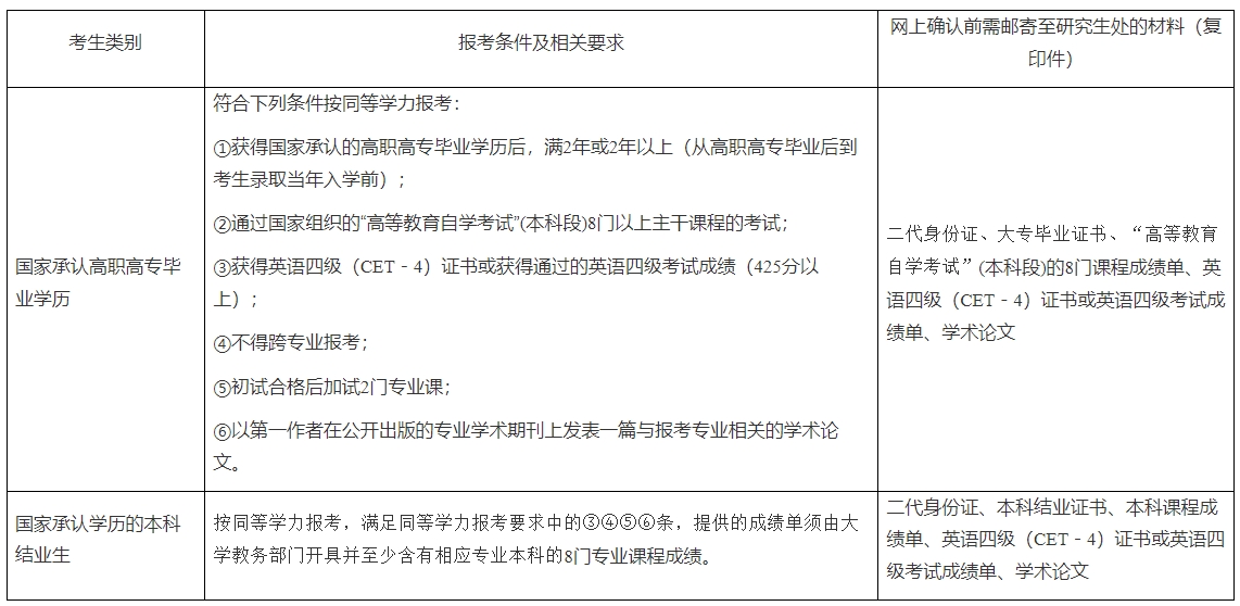1.國家承認學歷的應(yīng)屆本科畢業(yè)生(含普通高校、成人高校、普通高校舉辦的成人高等學歷教育應(yīng)屆本科畢業(yè)生)及自學考試和網(wǎng)絡(luò)教育屆時可畢業(yè)本科生,考生錄取當年入學前必須取得國家承認的本科畢業(yè)證書或教育部留學服務(wù)中心出具的《國(境)外學歷學位認證書》,否則錄取資格無效。