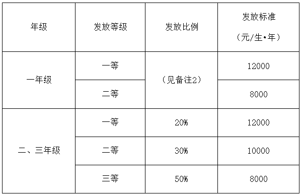 注:(1)面向納入國(guó)家招生計(jì)劃的全日制研究生。(2)一志愿考生、推免生獲一等獎(jiǎng)學(xué)金,其他調(diào)劑志愿考生獲二等獎(jiǎng)學(xué)金。(3)具體按學(xué)校有關(guān)制度執(zhí)行。如若學(xué)校研究生學(xué)業(yè)獎(jiǎng)學(xué)金實(shí)施辦法等有關(guān)制度修訂的,則參照最新修訂辦法執(zhí)行。
