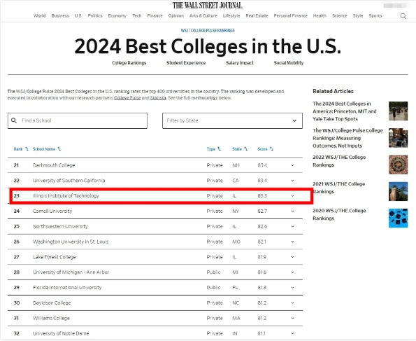 參考鏈接:https://www.iit.edu/news/illinois-tech-climbs-23-nation-wall-street-journals-2024-best-colleges-list